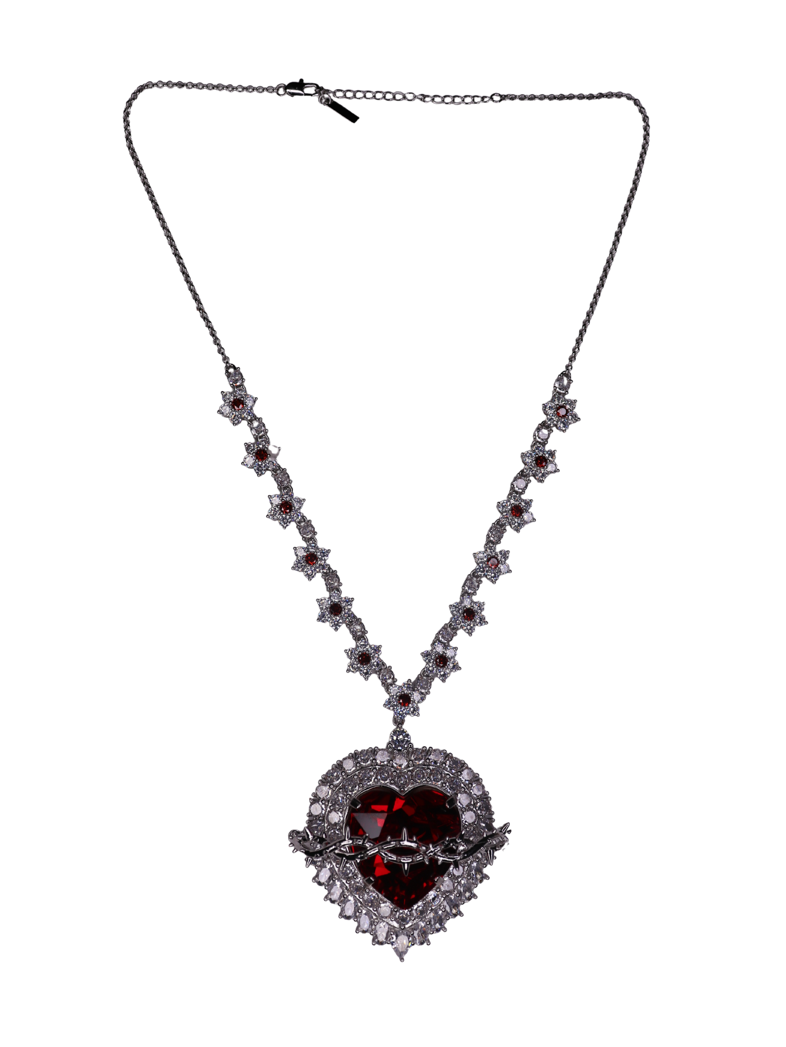 Chain features diamond linked lily flowers with a blood drop diamond center.